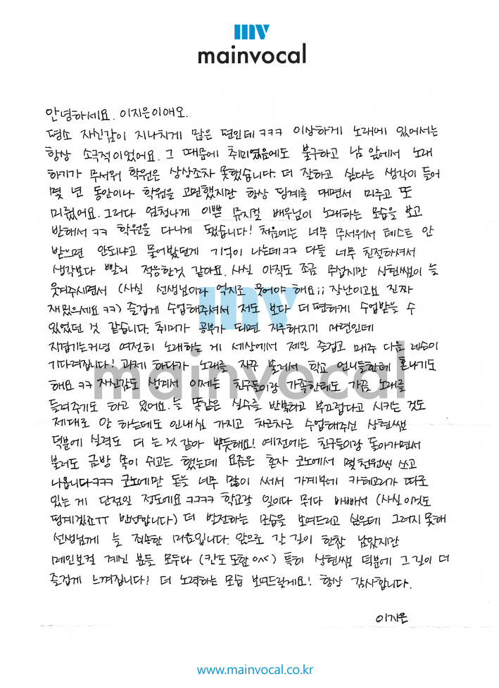 상호 : 메인보컬 실용음악학원 ㅣ 종목 : 실용음악교육 ㅣ 대표 : 노신애 ㅣ 학원사업자등록번호 : 842-93-00366 주소 : 서울특별시 성북구 동선동 1가 47번지 2층 (도로명) 성북구 보문로 34길 35, 2층 ㅣ Tel : 02-929-0709
