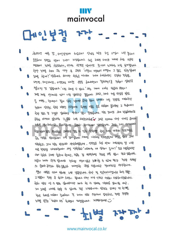 상호 : 메인보컬 실용음악학원 ㅣ 종목 : 실용음악교육 ㅣ 대표 : 노신애 ㅣ 학원사업자등록번호 : 842-93-00366 주소 : 서울특별시 성북구 동선동 1가 47번지 2층 (도로명) 성북구 보문로 34길 35, 2층 ㅣ Tel : 02-929-0709