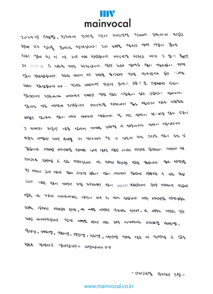 상호 : 메인보컬 실용음악학원 ㅣ 종목 : 실용음악교육 ㅣ 대표 : 노신애 ㅣ 학원사업자등록번호 : 842-93-00366 주소 : 서울특별시 성북구 동선동 1가 47번지 2층 (도로명) 성북구 보문로 34길 35, 2층 ㅣ Tel : 02-929-0709