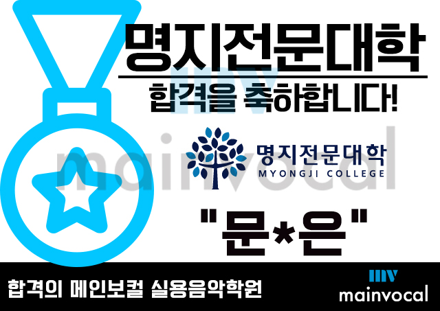 [합격의 메인보컬학원! 명지전문대 보컬 합격!] 끝없이 이어지는 메인보컬학원의 합격소식이 바로 오늘 발표된, 명지전문대 정시발표에서도 이어졌습니다^^ 예대 중에서도 많은 학생들의 사랑을 받고 있는 명지전문대 보컬에서 문지은 학생이 최종 합격하였습니다^^ 메인보컬학원과 함께 하며 많은 추억들을 만들며, 목소리를 찾고 다듬으며, 스타일리쉬한 보컬리스트로 성장한 문지은 학생은, 한 번 들으면 잊을 수 없는 그녀만의 보이스 컬러와 놀라운 표현력, 뛰어난 보컬 실력까지 겸비한 학생으로, 이미 메인보컬학원 내에서도 많은 팬을 보유하고 있는 스타인데요^^ 명지전문대 최종 합격을 축하하며, 앞으로 그녀가 보여줄 아티스트로서의 행보에도 많은 사랑과 기대 바랍니다^^ #명지전문대 #명지전문대합격 #명지전문대보컬 #명지전문대보컬합격 #명지전문대합격곡 #명지전문대합격자 #문지은 #메인보컬학원 #메인보컬실용음악학원 #메인보컬학원입시대박 #문지은합격 #너무좋아 #최고 #눈물나게 #축하해