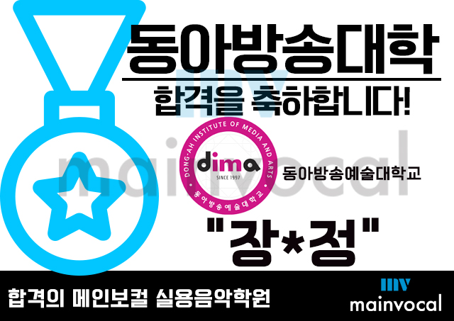 메이저 대학들의 합격 소식이 계속됩니다! 서경대, 단국대, 성신여대, 명지전문대, 백석예대 등에 이어 동아방송대 합격 소식입니다! 동아방송대에 합격한 장유정 수강생은 메인보컬학원과 함께 하며 놀랄정도의 변화를 경험하며 보컬 실력향상을 비롯 자신을 표현하는 방법까지, 다양한 시도와 도전을 통해 많은 성장을 이루었습니다^^ 동아방송대학에서도 반짝반짝 빛나는 멋진 보컬리스트로서의 장유정 학생의 모습도 많이 기대해주세요!