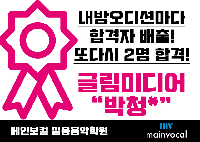 [메인보컬 무제한오디션_9월 글림미디어 JYP에 이어 또다시 2명 합격 쾌거!]