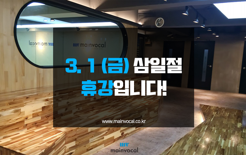 이전글 다음글 목록 본문 [3.1 휴강안내] 3월 1일(금) 삼일절 휴강합니다. | ~ 메인보컬 실용음악학원입니다^^3월 1일(금) 삼일절은 휴강이오니 이 점 착오 없으시길 바라며 3월 4일(월) 부터 정상 레슨이 진행됩니다. 방문 상담을 원하시는 분들은 홈페이지 혹은 모바일 웹페이지에 상담 예약을 남겨주시면 해피콜 후 원하시는 스케쥴로 예약해 드리겠습니다. 감사합니다^^ 댓글목록 등록된 댓글이 없습니다. 이전글 다음글 목록