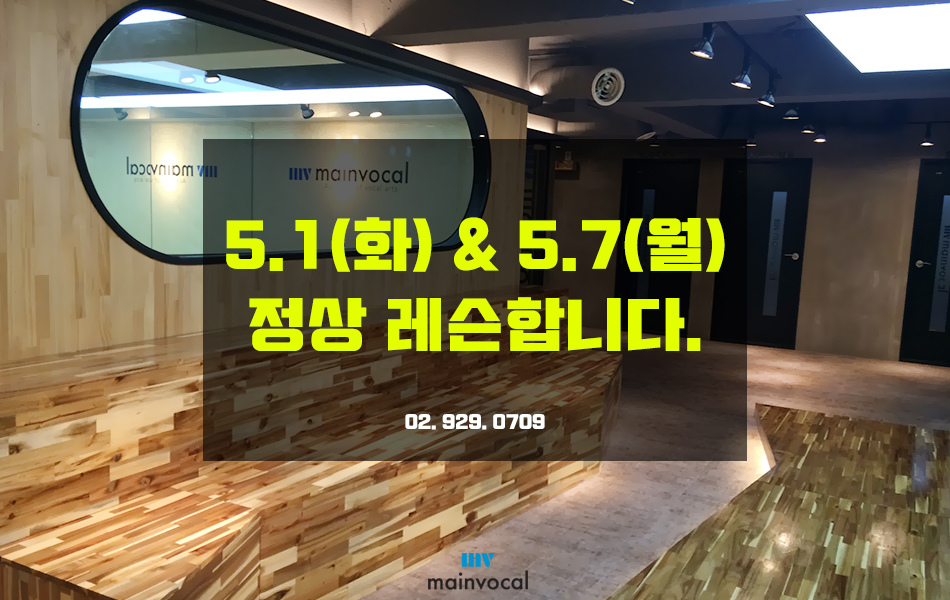 5.1(화) & 5.7(월) 정상 레슨 진행합니다.