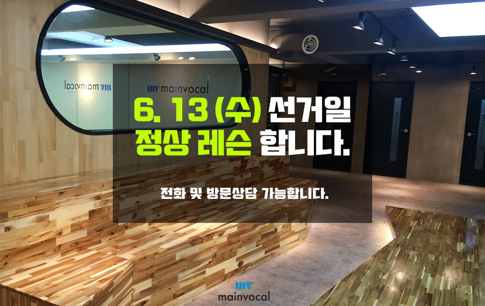 이전글 다음글 목록 본문 [6/13(수) 정상레슨] 선거일 당일 정상레슨 진행합니다^^ | 2018-06-11 ~ 메인보컬 실용음악학원입니다^^6월 13일(수) 선거일 정상 레슨 진행하며, 연습실 사용 가능합니다. 선거일 방문 상담을 원하시는 분들은 미리 예약해 주시면 기다리시지 않고 상담 가능하오니 참고해 주시기 바랍니다. 감사합니다^^ 댓글목록 등록된 댓글이 없습니다. 이전글 다음글 목록