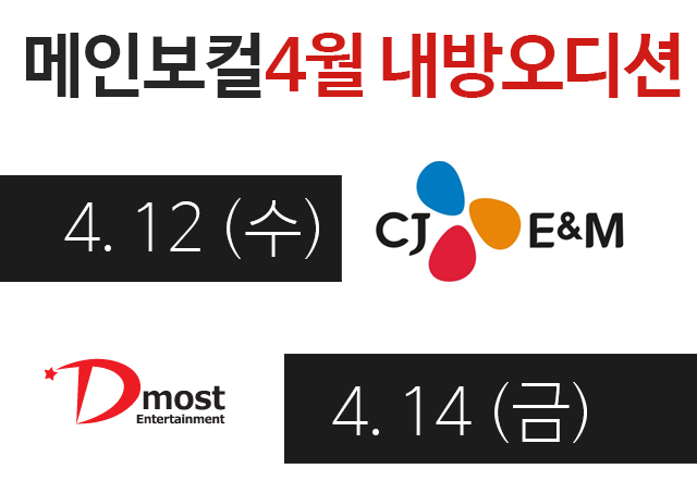 3월 오디션에 이어 4월 오디션 일정을 공지해드립니다~