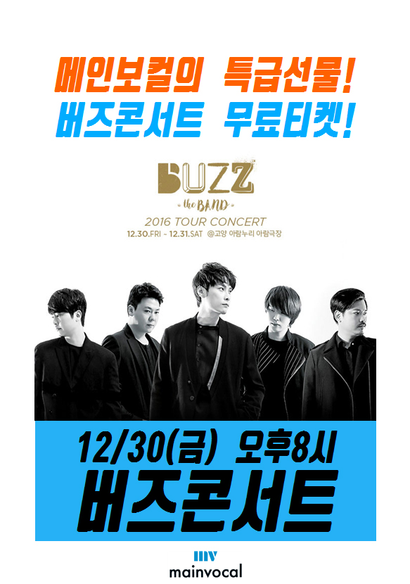 이전글 다음글 목록 본문 [티켓무료] 공연을 사랑하는 메인보컬! 콘서트티켓 무료! | 2016-12-29 ~ 2016-12-30 메인보컬입니다^^ 공연을 사랑하는 메인보컬은 [프리티켓 이벤트]를 통해 메인보컬 수강생들에게 공연을 볼 수 있는 기회를 제공하고 있습니다^^ 이번 연말에는 요즘 대세, 민경훈씨가 메인보컬로 있는 '버즈 콘서트'를 준비했어요^^ 모두 즐거운 연말 보내길 바랍니다~^^ 댓글목록 등록된 댓글이 없습니다. 이전글 다음글 목록