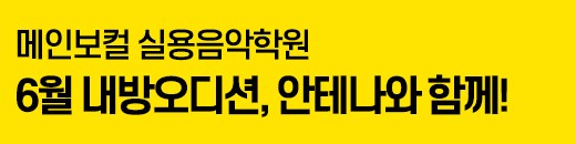 메인보컬 실용음악학원 입니다^^6월 내방오디션 기획사는 유재석, 이효리, 정승환 등 다양한 분야의 아티스트가 소속된 대형기획사 안테나 입니다^^안테나 내방오디션은 메인보컬 수강생만…