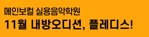 메인보컬 실용음악학원 입니다^^메인보컬 무제한 내방오디션! 11월 내방오디션 기획사는 글로벌 팬덤을 가진 K-POP 대표 소속사인 플레디스와 함께 합니다^^이번 …