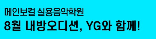 메인보컬 실용음악학웝 입니다^^8월 내방오디션은 케이팝 대표 기획사, 대표 그룹인 블랙핑크가 소속된 YG와 함께 합니다!역대급 기회가 될 이번 오디션을 통해 메인보컬 여러분의 꿈이…