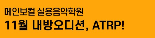메인보컬 실용음악학원 입니다^^메인보컬 무제한 내방오디션! 11월 내방오디션 두 번째 기획사는 사랑스러운 가수인 츄가 소속된 ATRP와 함께 합니다^^이번 오디션…