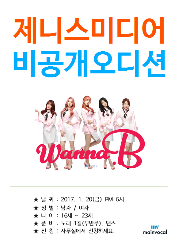 이전글 다음글 목록 본문 [진행완료] 제니스미디어 엔터테인먼트 비공개오디션! | 2016-12-30 ~ 제니스미디어 비공개 오디션을 진행합니다^^ 무반주로 진행하며, 선착순 접수로 진행하니 수강생 여러분은 사무실에 문의해주세요^^ 댓글목록 등록된 댓글이 없습니다. 이전글 다음글 목록
